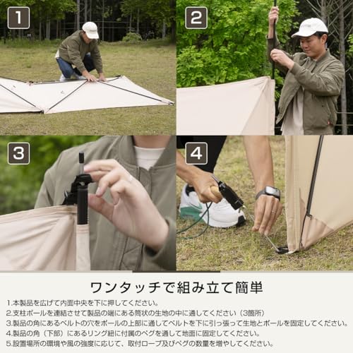 開放感を損なわず、機能的に自分や仲間の空間を作り出せるポップアップ式の簡単設営の陣幕です。