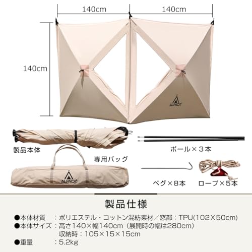 → 2ルームテント、4~5人用ワンポールテント、マイナス10度以下